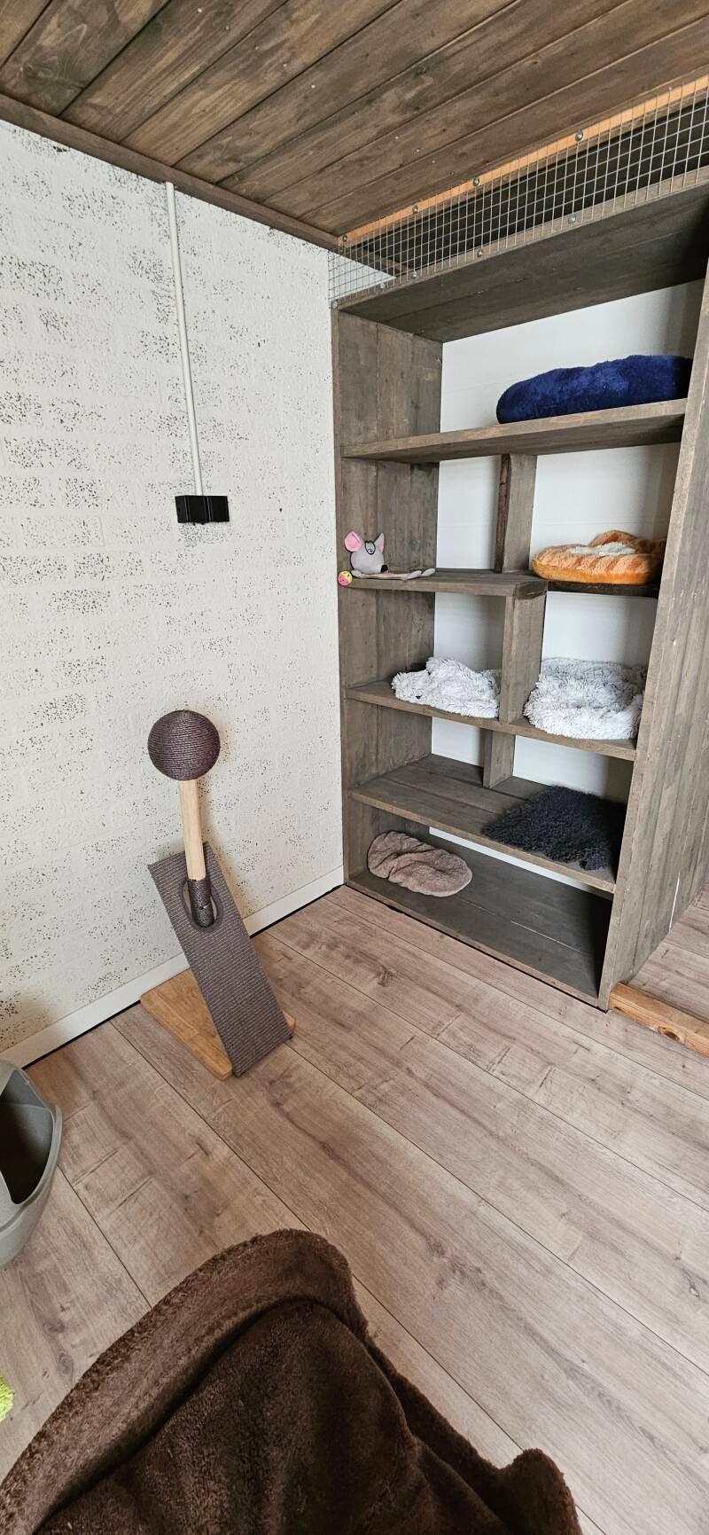 Vanaf 2024 zijn er ook 3 nieuwe binnen verblijven beschikbaar. Deze verblijven zijn speciaal gemaakt voor de binnen katten en voor de katten die van rust houden. De verblijven hebben geen buiten ren, maar zijn wel ruimer opgezet dan de reguliere verblijven. Er is een hoge kast omgebouwd tot prachtig klimtoestel en omdat het maar 3 verblijven in 1 ruimte zijn is het er lekker rustig. Wil je graag reserveren en gebruik maken van 1 van deze binnen verblijven? Geef dit dan even aan bij de reservering.